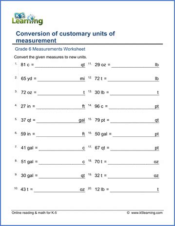 Where to Find Unit Conversion Worksheets for Grade 6