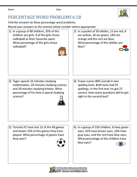 One of the best ways to help sixth graders understand percentage word problems is to give them a worksheet. A worksheet gives students the opportunity to practice their skills and get feedback on their answers. Plus, it helps them understand the concepts better by seeing how the math works together.